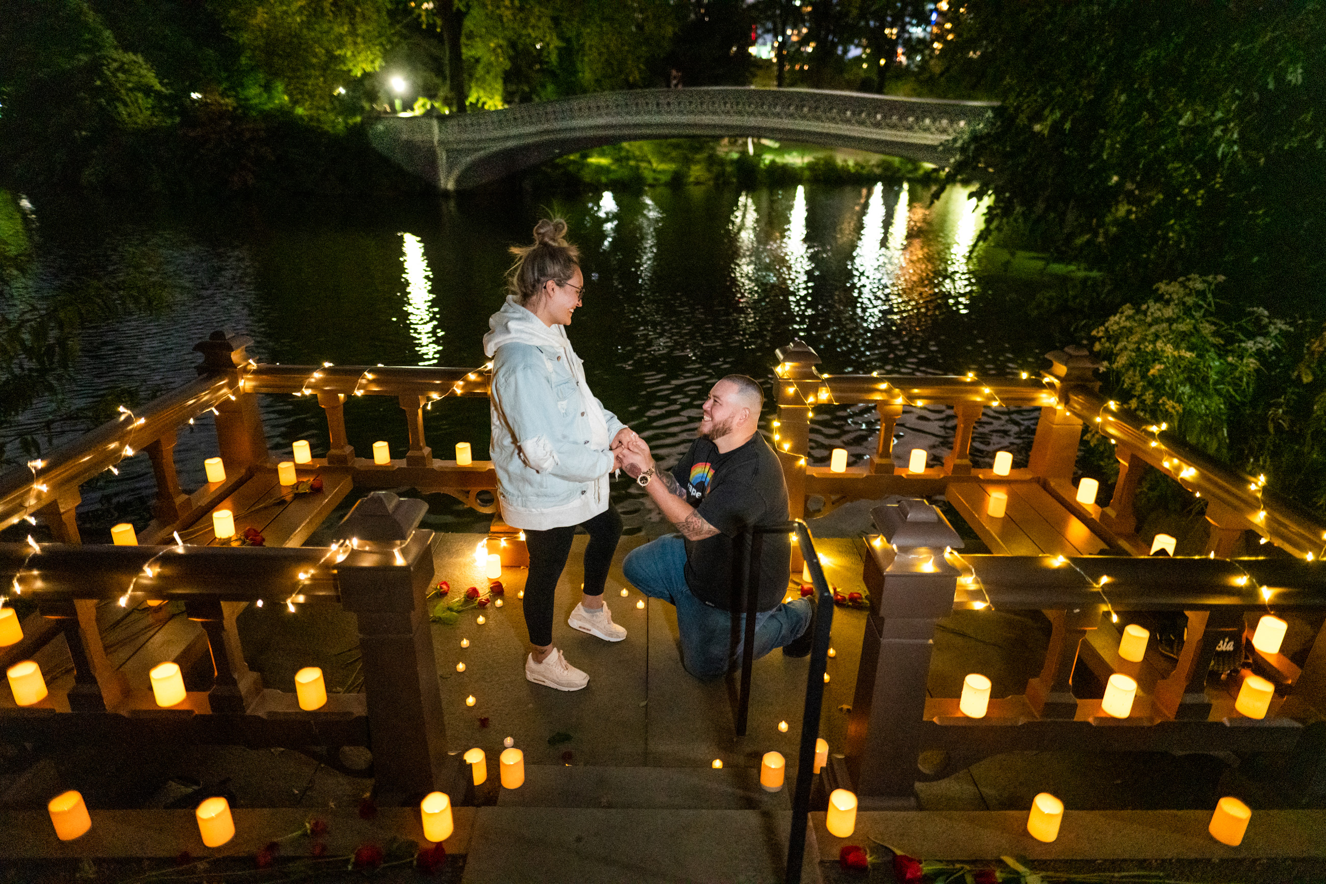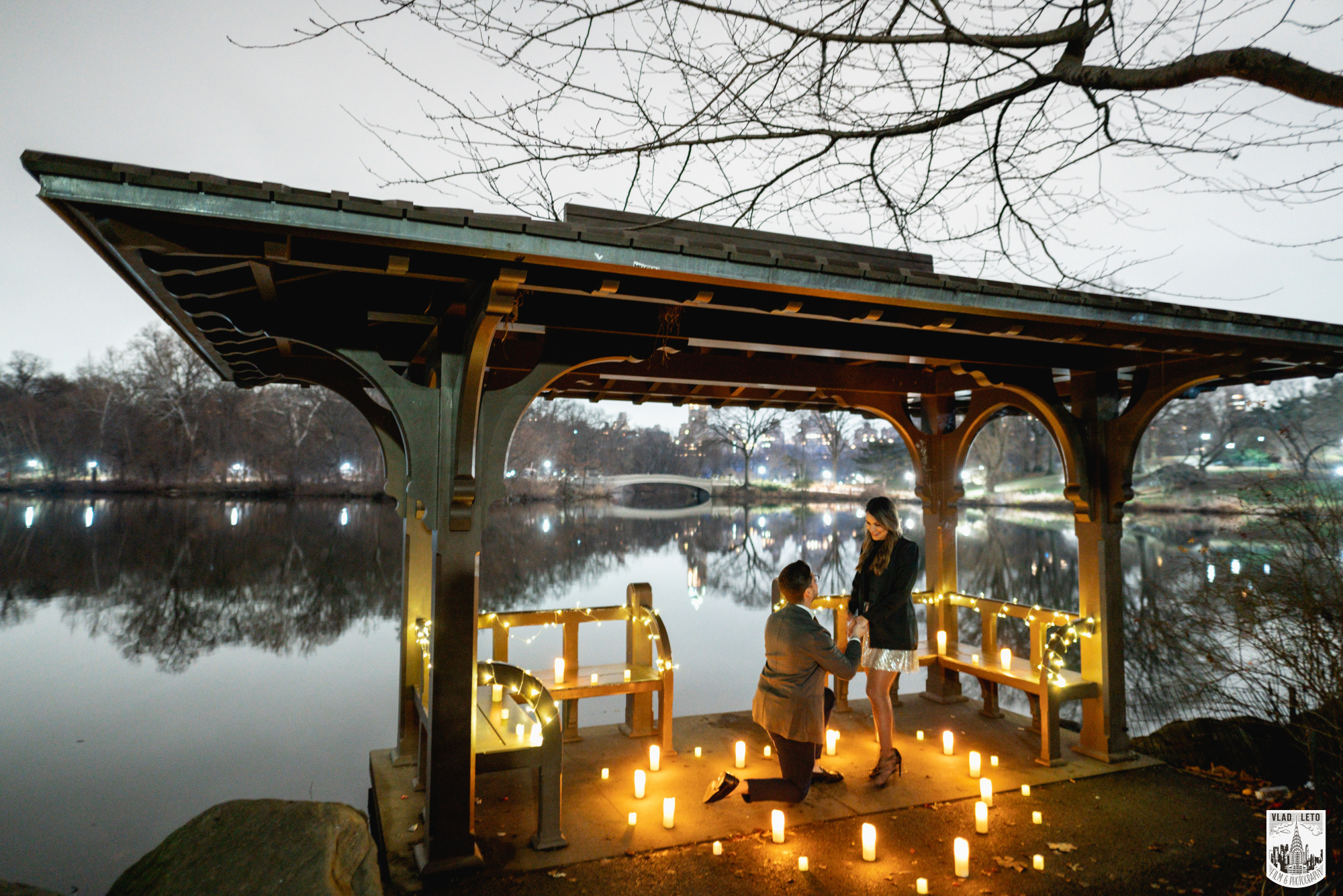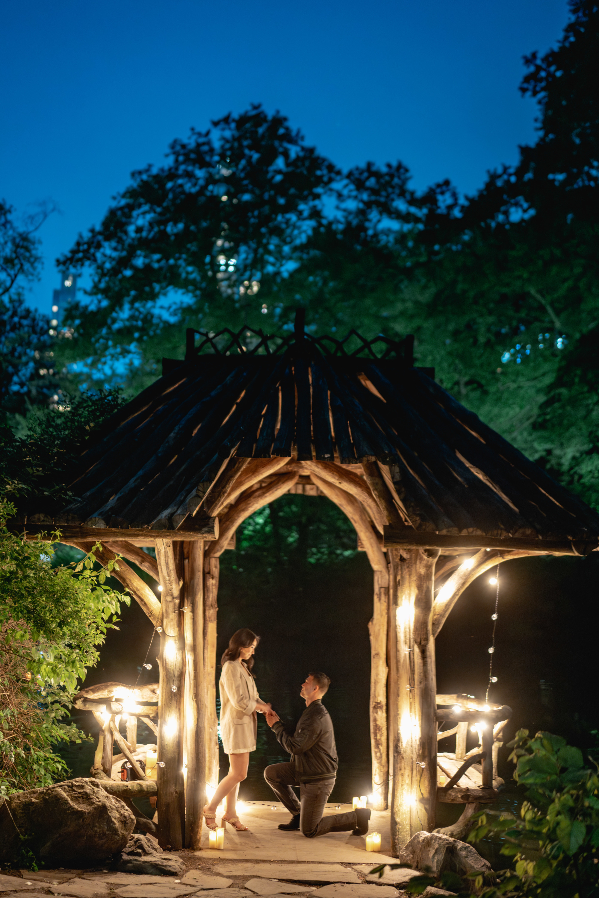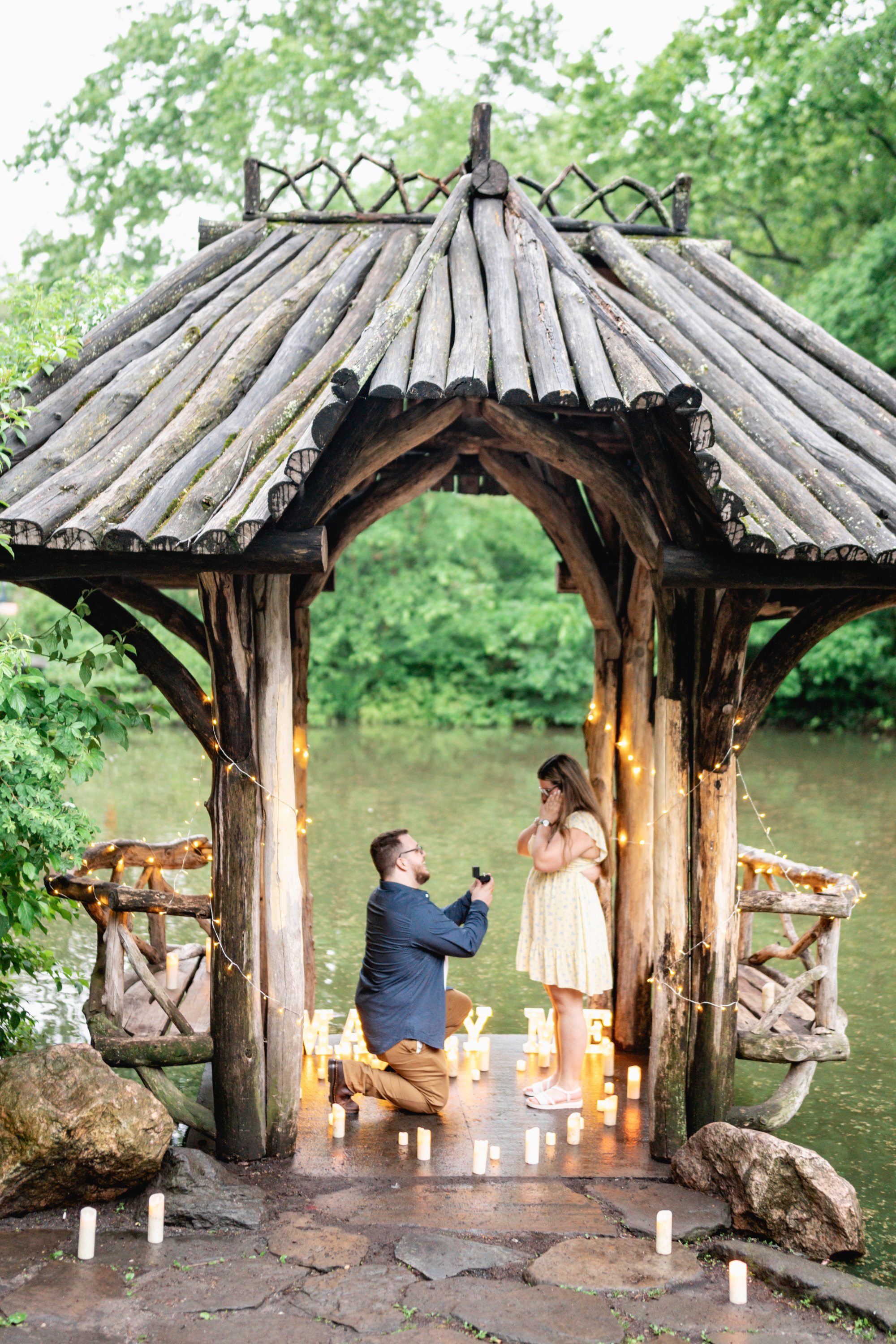 We will set up a romantic place for you, full of led candles and string lights. The photographer will be there taking pictures of your proposal moment.